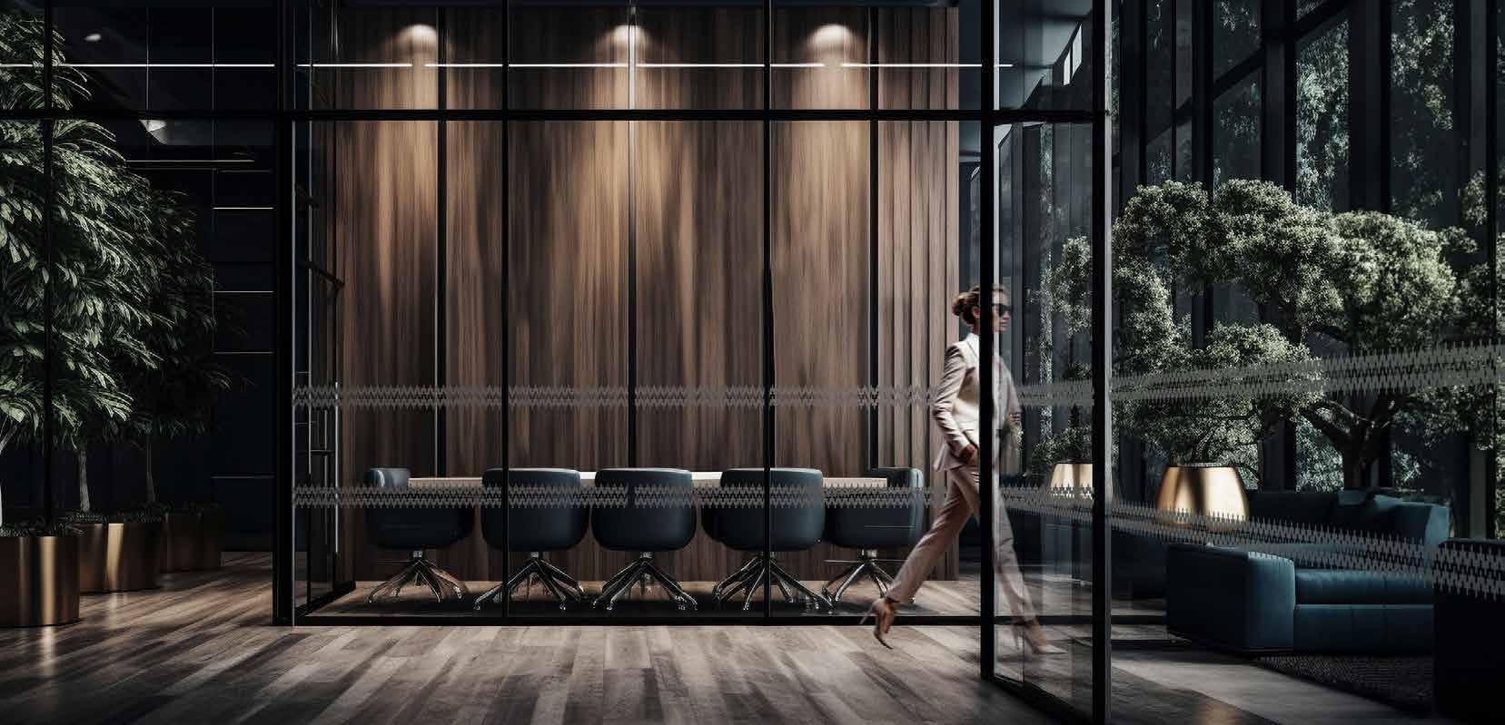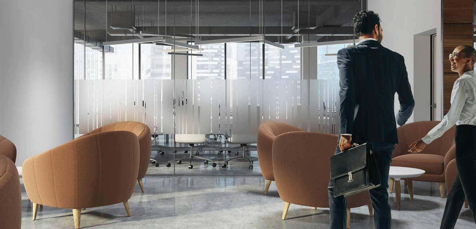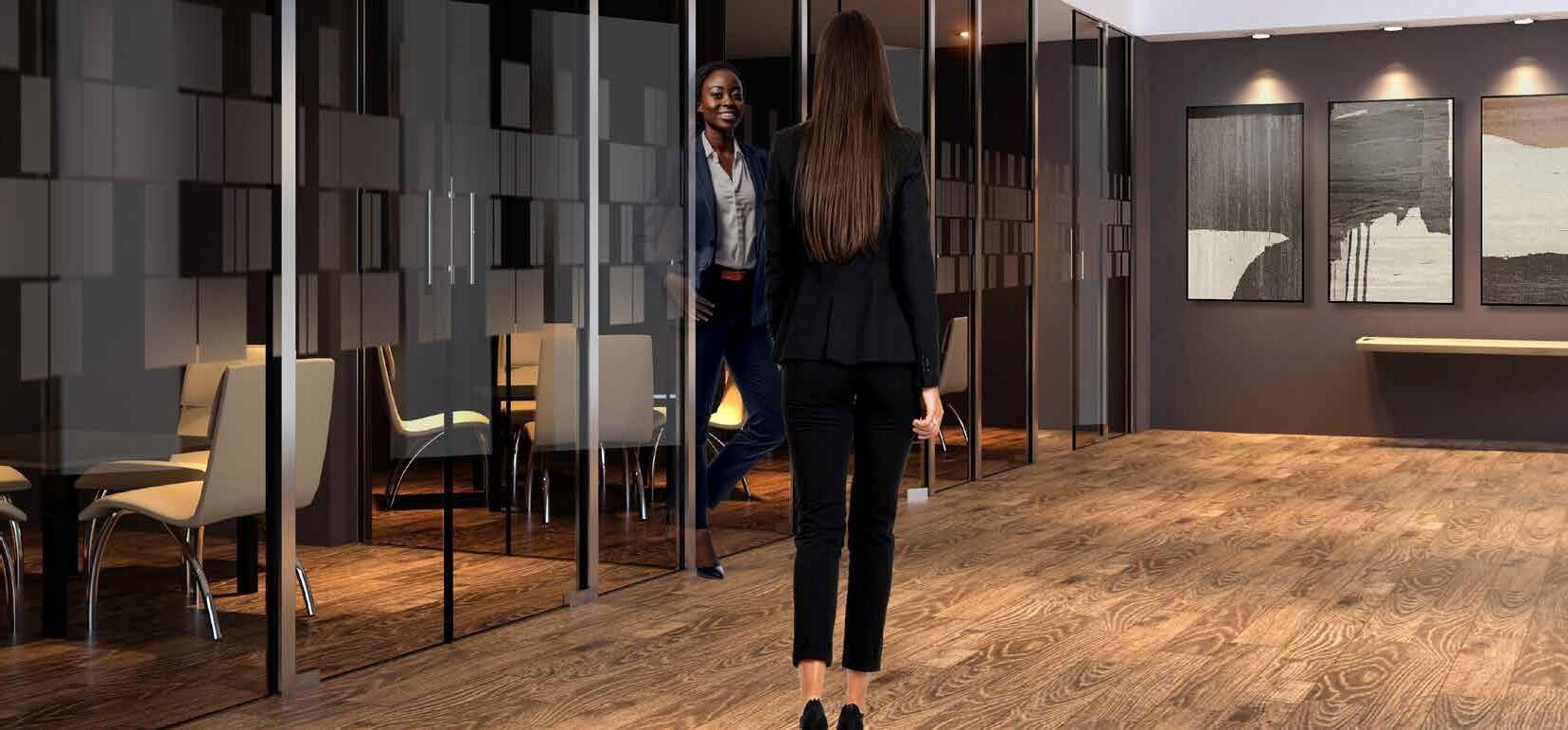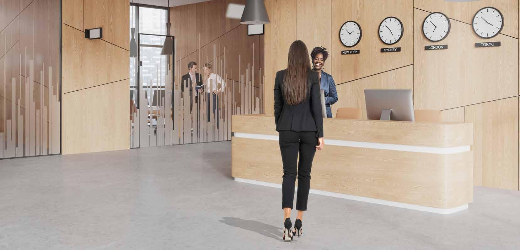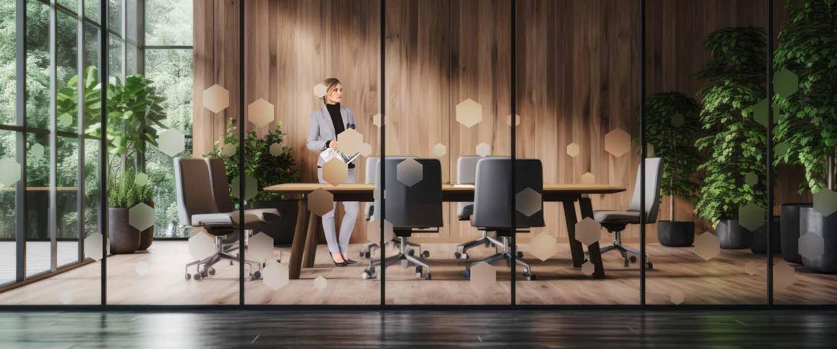 I dag er kontorlandskap, skoler og helsebygg i endring. Der det før var små cellekontor er det i dag landskap, stillerom, arbeidssoner, sosiale soner og teamsrom. Det krever en helt annen type veifinning og skjerming enn før. De moderne glassveggene, skilleveggene og landskapene gir nye muligheter til å lage estetisk gode veggflater og samtidig formidle identitet, tilhørighet og gi verdifull informasjon.