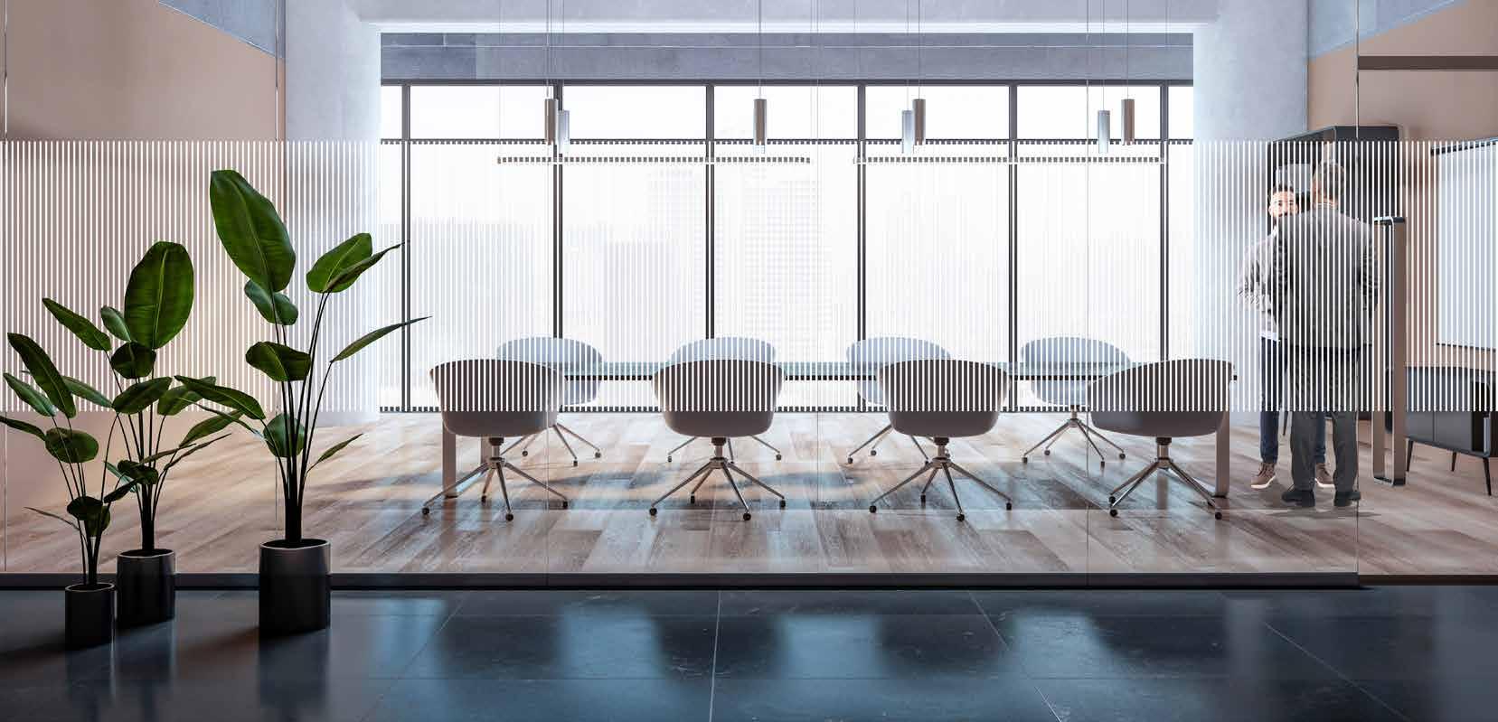 Designet passer lokaler som ønsker et stramt uttrykk men med organisk form. Har delvis innsynsskjerming som kan reguleres avhengig av hvilken folietype man går for. Fungerer både med frost-, glass- og tett folie.
