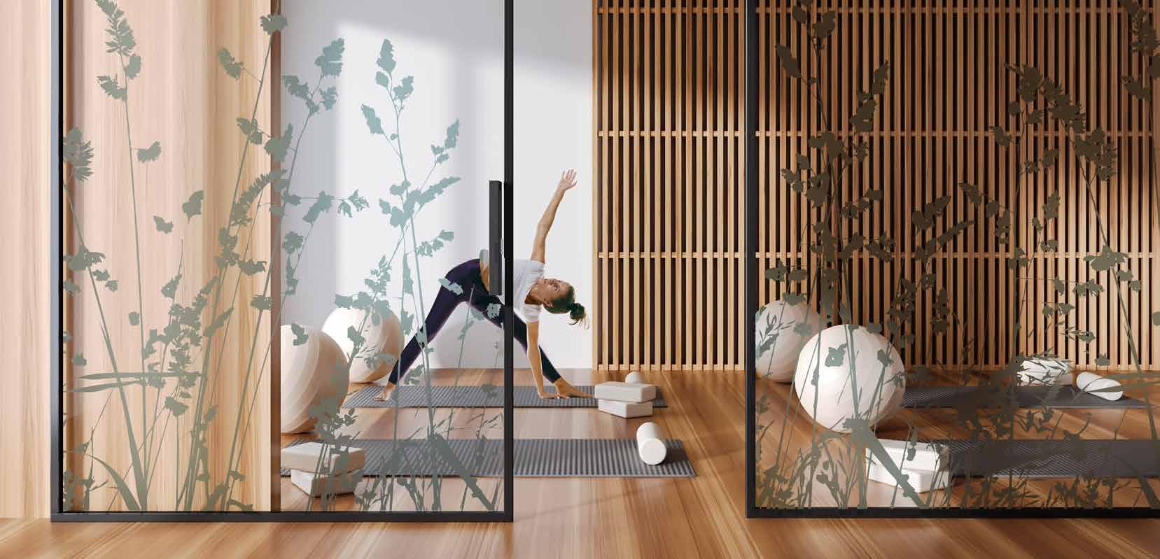 Nydelig design som gir deg følelsen av å være ute. Passer best med trykk på glassklar, men det luftige designet tillater også tett folie. Perfekt til lokaler der man skal finne ro. F.eks yogastudio, spa eller kanskje et venterom?