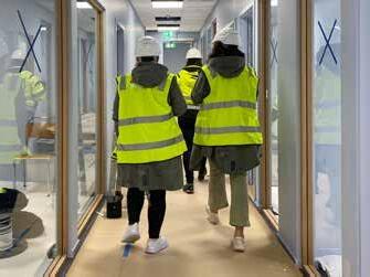 Etter avtalt tid kommer montørene og monterer opp folien.
