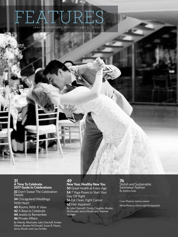 A Time To Celebrate 2017 Guide to Celebrations 32 Don’t Sweat The Celebration Details 34 Chicagoland Weddings With Heart 40 Rooms With A View 42 A Base to Celebrate 44 Jewels to Remember 46 Private Affairs By Wendy Altschuler, Julie Chernoff, Amber Gibson, Brooke McDonald, Susan B. Noyes, Jenny Muslin and Lisa Zimbler