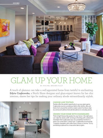 A touch of glamour can take a well-appointed home from tasteful to enchanting. Edyta Czajkowska, a North Shore designer and glam-expert known for her chic interiors, shares her tips for making your ordinary abode extraordinarily stylish. Textiles offer the perfect opportunity to up your glam game. Czajkowska sources sumptuous fabrics like velvets, silks and linens from around the world to create custom furniture, drapery and accent pillows that add decadence to everyday pieces.