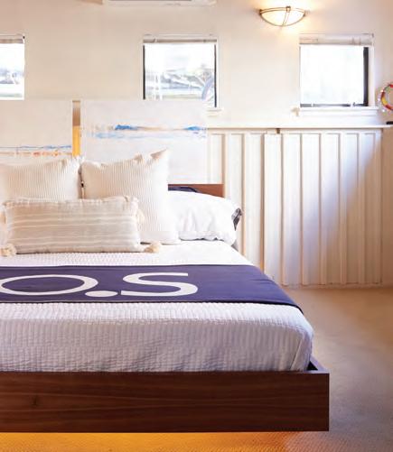 the interior space. “There’s even a tunnel that takes it through the powder room. I think it might be off-putting to some, but the kids love it,” Thomas says. A floating dock provides addi tional outdoor space: “I put in a ladder so the kids could climb down to it from my front deck.”