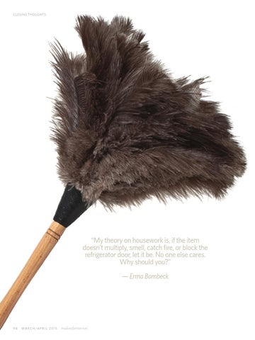 “My theory on housework is, if the item doesn't multiply, smell, catch fire, or block the refrigerator door, let it be. No one else cares. Why should you?” — Erma Bombeck
