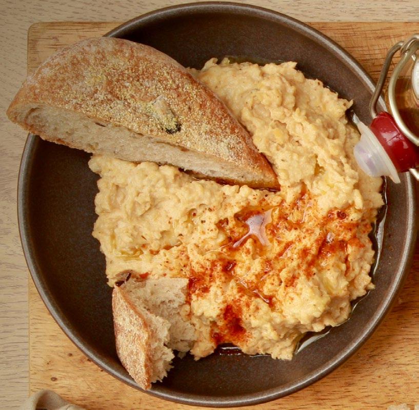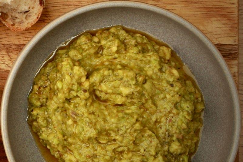 Guacamole is easier than hummus. Mash avocado with olive oil, finely chopped coriander, lime juice and salt. We’ve added some coarse black pepper and harissa to ours to give it a little hot-tongue appeal. Chillies are another good option. And you could add a clove of finely chopped garlic if you like.