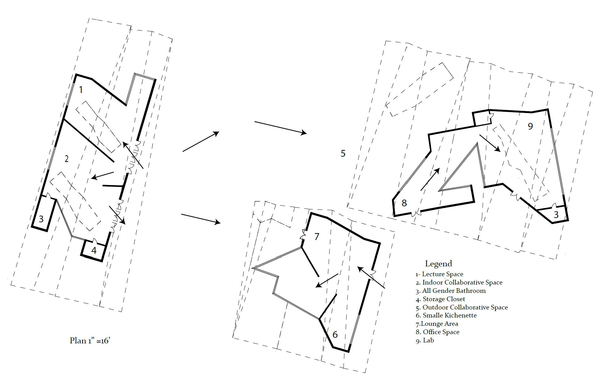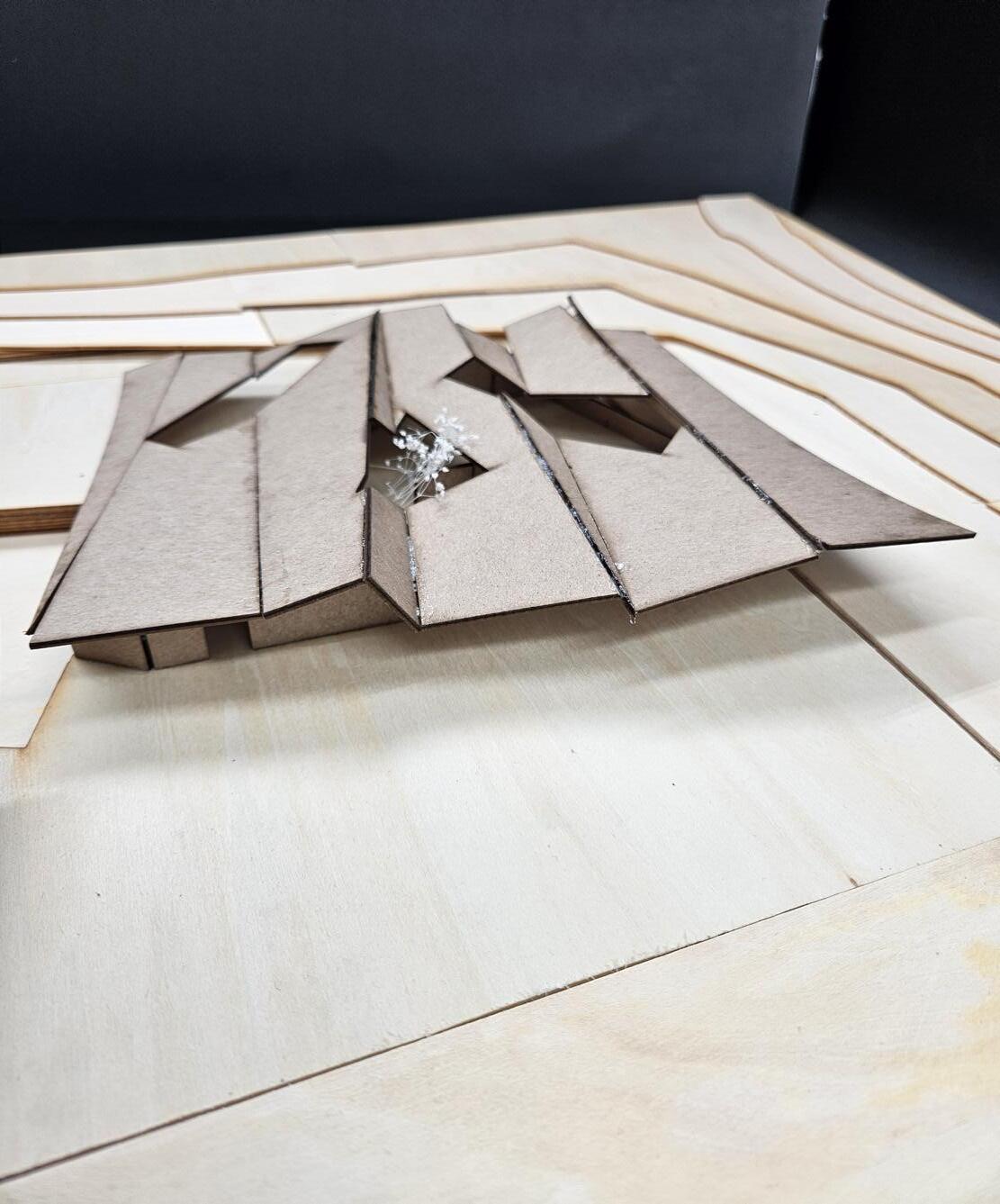 Through ground removal, infill, and modification, the Carpenter Ant Research Center establishes a direct architectural dialogue between structure and terrain. Inspired by the carpenter ant’s tunneling behavior and ecological role in decomposing wood, the design integrates subterranean circulation with spaces for research and education.