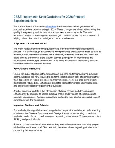 CBSE Implements Strict Guidelines for 2026 Practical Experimentations