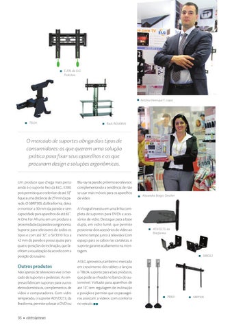 O mercado de suportes abriga dois tipos de consumidores: os que querem uma solução prática para fixar seus aparelhos e os que procuram design e soluções ergonômicas. Um produto que chega mais perto ainda é o suporte fixo da ELG, E200, pois permite que o televisor de até 32” fique a uma distância de 29 mm da parede. O SBRP300, da Brasforma, deixa o monitor a 30 mm da parede e tem capacidade para aparelhos de até 65”. A One For All uniu em um produto a proximidade da parede e a ergonomia. Suporte para televisores de todos os tipos e com até 32”, o SV3310 fica a 42 mm da parede e possui ajuste para quatro posições de inclinação, que facilitam a visualização de acordo com a posição do usuário.