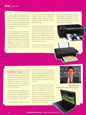 book Eurocase C50-14 con pantalla de 14.1” LED, disco de 320Gb, grabadora de DVD, sistema operativo Windows 7 Starter Edition, procesador AMD Dual Core C50, memoria PCBOX de 2Gb, HD internet, batería de 6 celdas, conexión Wi-Fi y lector de tarjetas. Según explicó, Mauro Guerrero, Gerente Comercial Grupo Núcleo/ Eurocase Argentina, las expectativas con esta campaña son muy buenas, ya que es una de las fechas de mayores ventas en los retails. “Si bien las compras tuvieron una disminución en los consumidores finales esperamos con esta campaña volver a los volúmenes de ventas que veníamos manejando en el 2011”, concluyó.