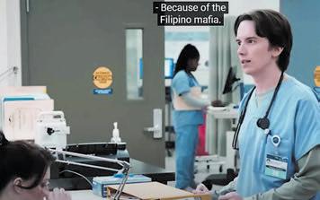 “They’re like the Filipino Mafia,” whispers the nurse character avoiding being seen as racist.. “Hospitals can feel like high school. There are cliques