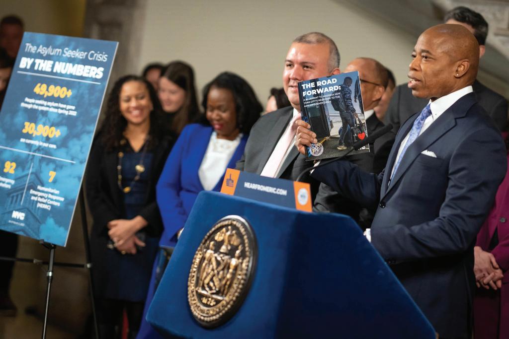 By Forum StaffMayor Eric Adams on Tuesday released “The Road Forward: Blueprint to Address New York City’s Response to the Asylum Seeker Crisis,” a comprehensive approach outlining the next phase of the city’s response to the unprecedented humanitarian crisis resulting from the surge of asylum seekers arriving in the five boroughs since last spring. As the number of asylum seekers arriving in New York City since last April tops 50,000—with more than 30,000 currently in the city’s care—Adams announced he will create the Office of Asylum Seeker Operations (OASO) to focus solely on coordinating the city’s continued response with a focus on resettlement and legal services, as well as a new 24/7 arrival center for asylum seekers.