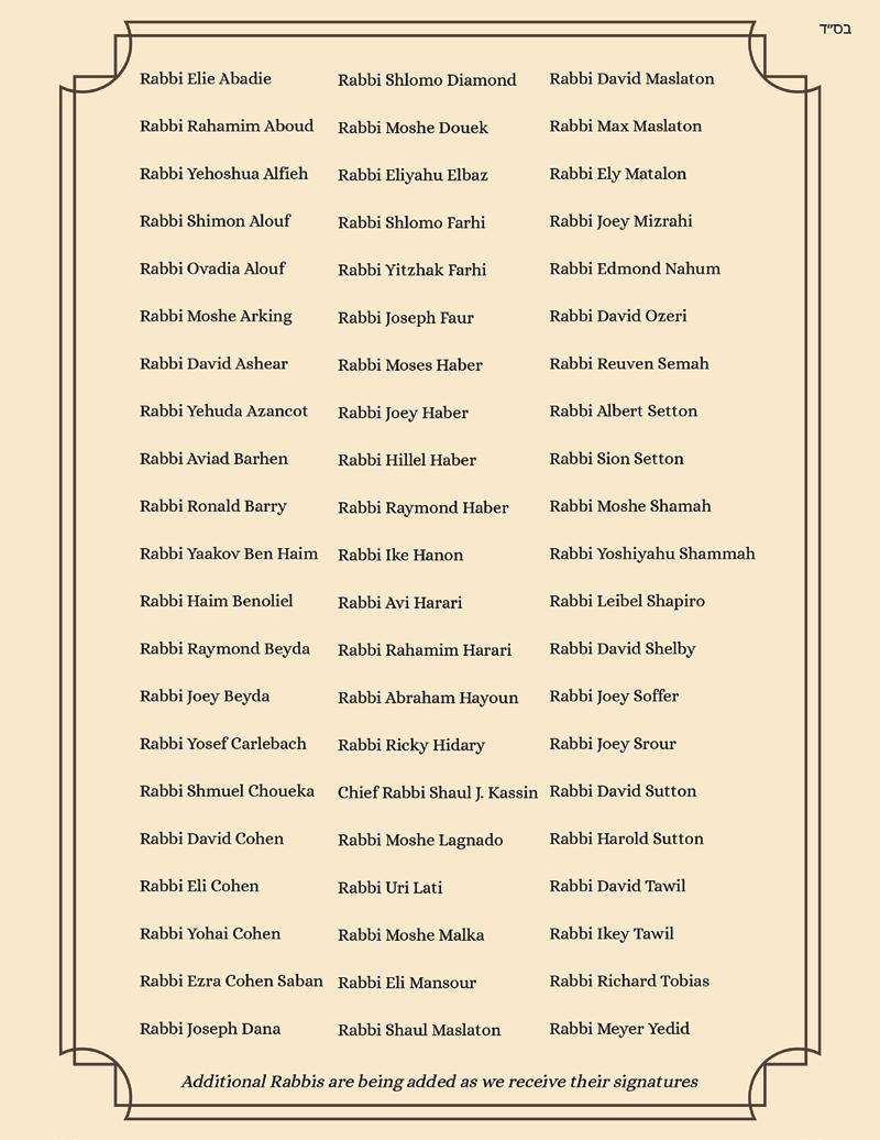 102 Letter from Chief Rabbi Shaul J. Kassin