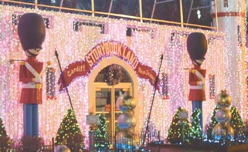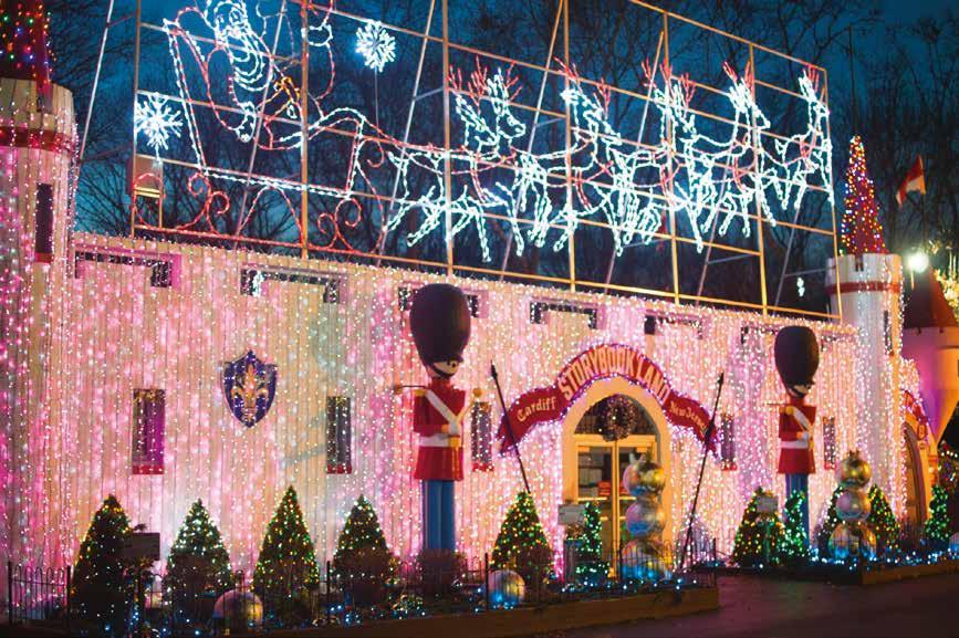 by. As you walk down the corridor towards Lucky Snake Arcade, you will pass many other festive decorations including a Santa area at the mid way point, with two additional trees decorated in a candyland theme. o nce you reach the atrium, you will be welcomed through a spectacular archway by two 8-foot nutcrackers and an archway swagged with luxuri ous red fabric and two huge wreaths. There are extra hints of Christmas throughout the building which will surely put you in the Christmas spirit.