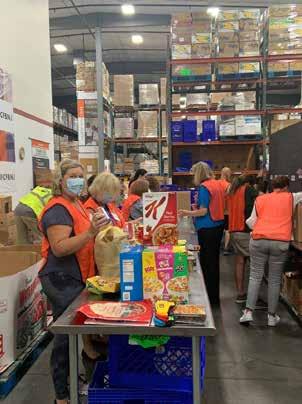 Volunteers sort through hefty donations and restock shelves in the pantry, separating them into cat egories such as frozen food, fresh produce, canned food, diapers/ menstrual products, dairy and even baked goods. Prior to the pandemic, neighbors could browse similar to traditional grocery stores, but since 2020, volunteers have gathered gro ceries for them.