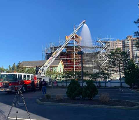 The Margate City Fire De partment gave Lucy the Elephant a gigantic-sized shower Monday, Nov. 21. Lucy has been under restoration and hidden behind plastic wrapped scaffolding for the past 14 months.