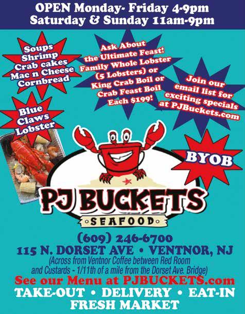 “It’sAllGood!” Impressiveappetizers, amazingmealsand deliciouspartytrays... perfectfortheholidays! 1121TILTONROAD, NORTHFIELD (609)646-2486 GIVEBOB’SGIFTCERTIFICATES FORTHEHOLIDAYS! CallAhead Please toPlace YourHoliday Orders PARTY TRAYS COOKED TAKEOUT PLATTERS SHRIMP CRAB LOBSTER SCALLOPS CRAB CAKES FLOUDER OYSTERS CLAMS SALADS & MUCH MORE!