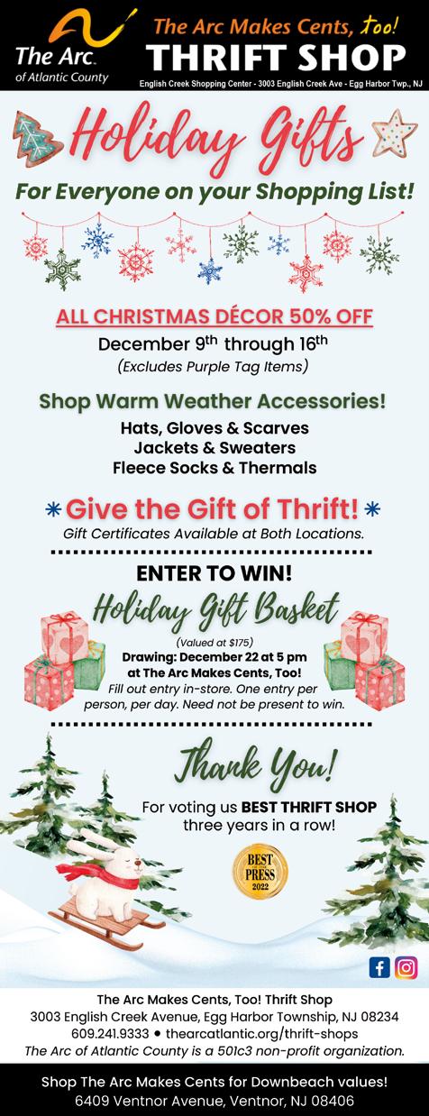 NEW JERSEY'S NEWSMAGAZINE December 8, 2022 Free SCAN TO READ ONLINE Holiday Happenings Community Rallies to Reunite Lost Dog Bike Club in Gear to Give Some Cheer Egg Harbor, Wisconsin?
