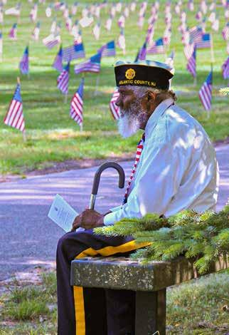 In the distance, bagpipes can be heard playing hymns of the various armed forces as they march towards us accompanied by their drummers. atlantic County Executive, Dennis Levenson has been giving a poignant opening speech for years and there is always an impressive keynote speaker conveying the weight of the debt we all owe our veterans. an honor guard is present, and a wreath is laid as the american flag is lowered to half-mast. Veterans, some of whom are helped to their feet, stand at attention and salute Old Glory, our flag which for over 250 years has flown over battlefields both on land and sea, sometimes in tatters. Taps, a haunting and distinctive melody of only 24 notes is