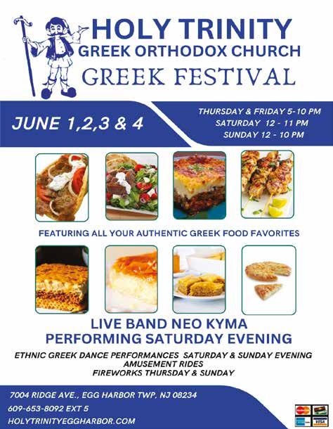 Fresh, Homemade Ice Cream Cakes Order for all occasions (48 hour notice required) (609) 398-2207 55TH STREET & WEST AVENUE, OCEAN CITY HALF GALLONS AVAILABLE NOW! alamodeicecreamparlor.com @alamodeocnj Find Our Full Menu Online Enjoy fresh, quality produce at wholesale prices. Santori's has the healthy food your family loves. Check out our produce specials on Specials Valid 6/1 thru 6/5 AMERICAN CHEESE...........................................................$4.99LB GOURMET LITE TURKEY BREAST.............................$8.99LB EXTRA LEAN ROAST BEEF............................................$9.69LB BEEF BOLOGNA....................................................................$5.29LB MOZZARELLA CHEESE...................................................$5.49LB IMPORTED HAM.................................................................$6.79LB ITALIAN STYLE ROAST PORK.....................................$6.99LB GOURMET CHICKEN BREAST.......................................$6.99LB STORE SLICED PROVOLONE CHEESE........................$5.29LB 510 New Road, Somers Point 609-927-4656 325 E. Jimmy Leeds Rd. Galloway 609-652-5252 Open Mon-Fri 8am-6pm Sat. 8am-5pm Sun. 9am-3pm BROCCOLI CROWNS THIS WEEK'S SPECIALS CLEMENTINES 2 (1 LB) PACKAGES FOR $3.50 2 LBS FOR $2.00 HEAD $1.99 2 LBS FOR $3.00 3 LBS FOR $3.99 FRESH CAULIFLOWER STRAWBERRIES GOLDEN RIPE PINEAPPLES EACH $2.50 3 June 1, 2023