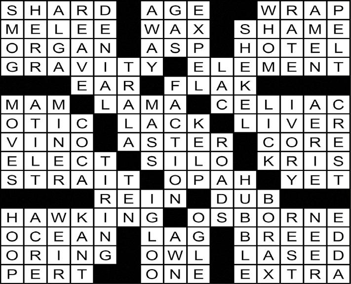 Daisylike bloom 43 Apple leftover 44 Choose Trump, e.g. 46 Feed storage 47 Actor Kristofferson 48 Gibraltar or Bering 50 Moonfish 52 Hitherto 53 Jockey's leash 55 Give a nickname to 57 *"A Brief History of Time" author 61 "One of us" singer Joan 65 *Most of earth's hydrosphere 66 Fall behind 68 American Akita, e.g. 69 Circular gasket 70 nocturnal flyer 71 Verb derived from "laser" 72 Chipper 73 Smallest whole number 74 "_____! Read all about it!"