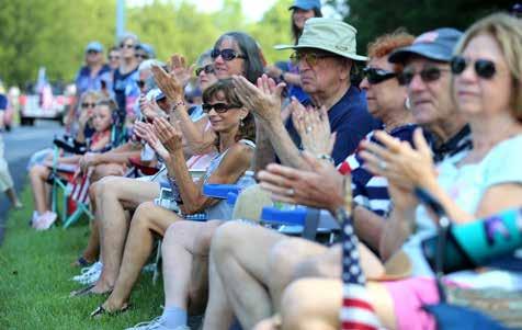 Veterans, who received a standing ovation as they walked by the rows of patriotic-dressed spectators lined along Smithville Boulevard.