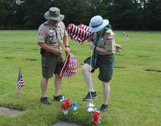 u pon arrival, scouts checked in with park staff, who possessed papers with the names of people who helped in the past. Then they split into groups of two or three and took handfuls of flags from buckets located around the cemetery and poked them into the ground.