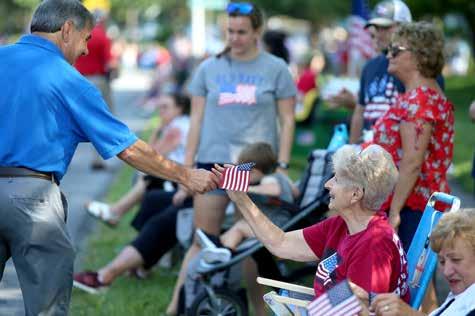 Veterans, who received a standing ovation as they walked by the rows of patriotic-dressed spectators lined along Smithville Boulevard.