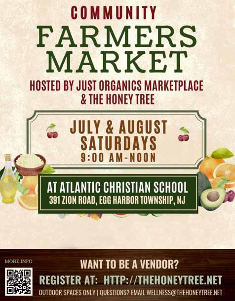Just Organics Marketplace and Honeytree Health host a Community Farmers Market on Saturdays in July and August, featuring a variety of local pesticide-free farmers, food vendors, artists and crafters. Come enjoy corn hole, live music, yoga and more. For more information, visit thehoneytree.net or e-mail wellness@ thehoneytree.net.