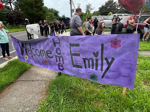 On July 25, Emily was welcomed home with a police procession that started at the hospital and ended at her house.