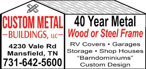 CONSTRUCTION30+ years experience. Remodeling, additions, garages, decks, sheds, metal roofs & more. Call for free estimates today. 731-358-9144.