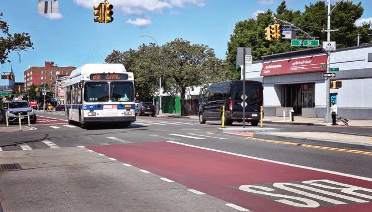 From 2018-2021 DOT focused on pedestrian safety by adding Leading Pedestrian Intervals at all feasible intersections, added Le Turn Tra c Calming where feasible, constructed 15 new concrete pedestrian refuge islands, and added painted curb extensions at all feasible locations. From 2021-2023, transit improvements included the consolidation of 10 paired bus stops and the addition of the Bus Only Lane.