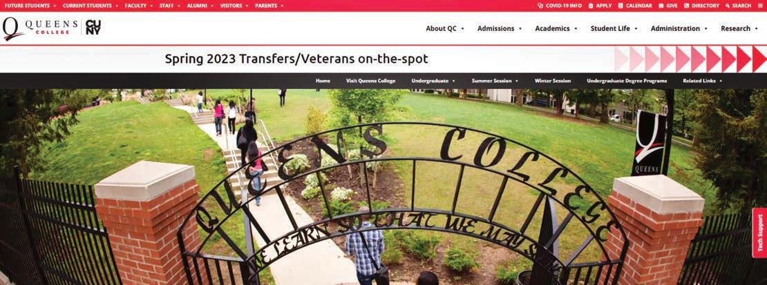 Before their visit, applicants must complete a CUNY application and pay an online application fee at: cuny.edu/apply. All official transcripts must be sent to QC by mail or via email to transcripts@ qc.cuny.edu. Transcripts submitted in person must be in sealed envelopes. Applicants from non-CUNY colleges must bring official transcripts from all institutions they have attended. Veterans and military service members with military credits may submit their transcript to Joint Service Transcript at https://jst. doded.mil/jst/. Applicants should also bring their COVID-19 vaccination card,