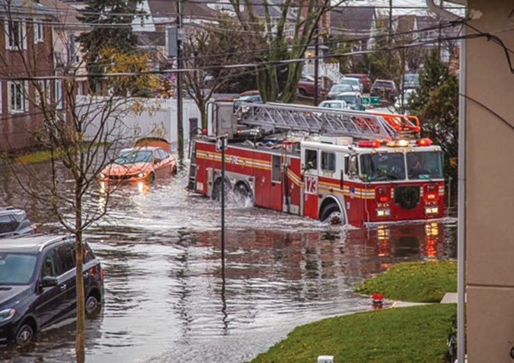Torrential downpours and high-speed wind gusts caused Jamaica Bay to over ow, bringing several feet of ood water to the area. Communities such as Old Howard Beach and Hamilton Beach were greatly af-
