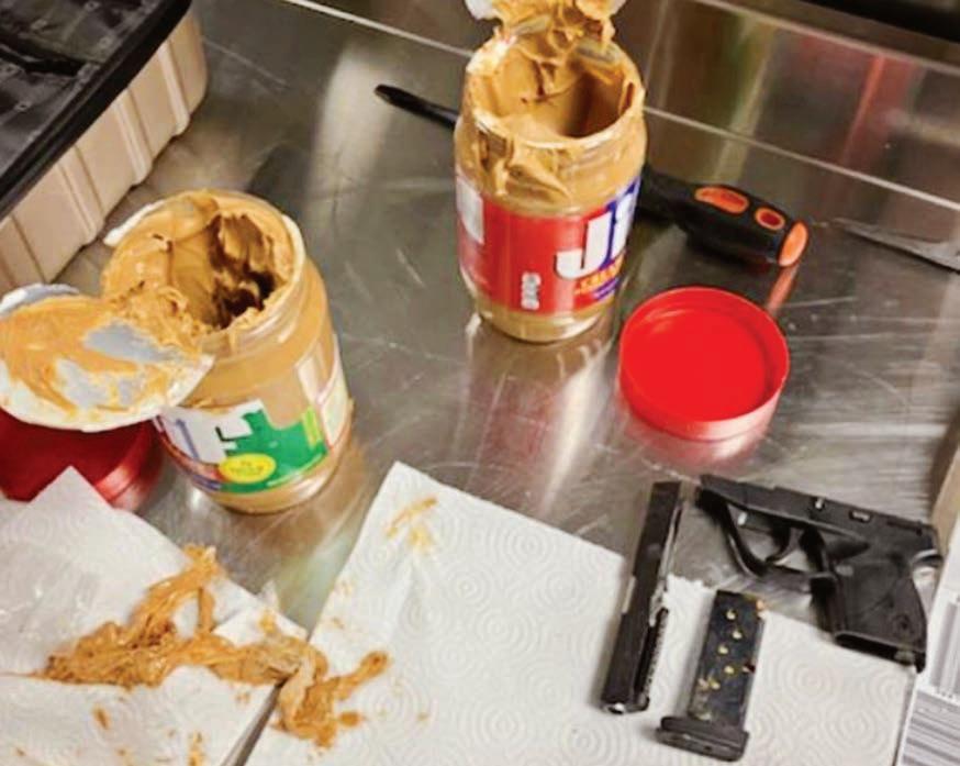 Just before Christmas, TSA o cers at JFK Airport stopped a passenger who was traveling with two jars of peanut bu er in a checked bag when the bag triggered an alarm. Upon closer inspection, the TSA o cers removed parts of a disassembled .22 caliber handgun that had been artfully concealed in what was packaged to look like two unopened