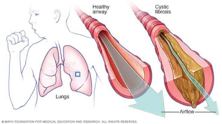 it’s unable to help move chloride—a component of salt—to the cell surface. Without the chloride to a ract water to the cell surface, the mucus in various organs becomes thick and sticky. In the lungs, the mucus clogs the airways and traps germs, like bacteria, leading to infections, in ammation, respiratory failure, and other complications.