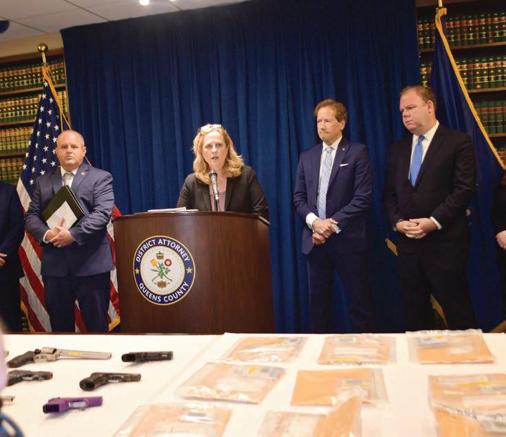 “ e NYPD’s ght against the tra cking of illegal guns and illicit narcotics in our city is at the forefront of our public-safety mission. e defendants in this case showed a callous disregard for human life, and we will never waver in our e orts to hold them – and anyone else who threatens the people we serve –fully accountable,” City Police Commissioner Keechant Sewell said. “I want to thank our NYPD investigators, the O ce of the Queens District A orney, the New York State Police, and the Nassau County Police Department for their work on this important case.”