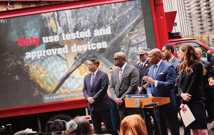 Mayor Eric Adams, City Fire Commissioner Laura Kavanagh, and City Small Business Services Commissioner Kevin Kim recently announced a new action plan to expedite investigations into complaints made via 311 about potentially hazardous conditions involving lithium-ion ba eries at bike shops and bike repair shops within the ve boroughs. Additionally, Mayor Adams and administration ofcials announced a joint comprehensive outreach and education campaign to educate bike shop and bike repair shop owners about the dangers presented by lithium-ion ba eries and best practices to avoid res.