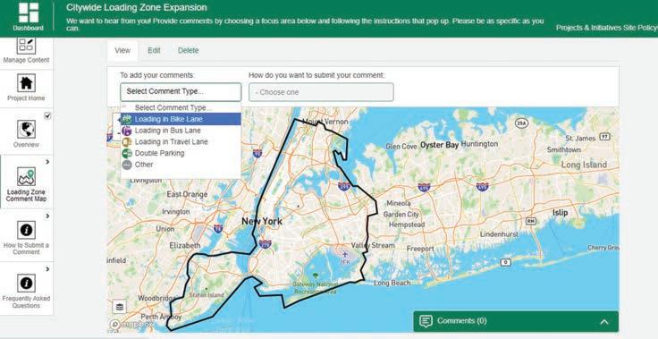 e platform lets users place a pin on a map to identify problem areas, and to add comments. Users can report areas that commonly involve the loading and unloading of passengers and/or goods. NYC DOT will use this information, along with other data and considerations, to determine where additional loading zones should be located citywide. As of March 2023, NYC DOT
