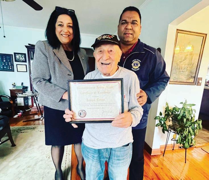 Locally, Councilwoman Joann Ariola (R-Ozone Park) and State Sen. Joe Add abb, Jr. (D-Howard Beach), Jr. each hon ored South Ozone Park resident and World War II veteran Joe Cerese with citations from the City Council and the State Senate.