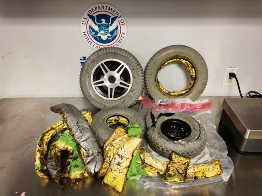 Emelinda Paulino De Rivas, a citizen of the Do minican Republic, arrived on a ight from Punta Cana, D.R. De Rivas was traveling in a wheelchair when CBP o cers decided to interview her. CBP o cers noticed that the wheels on the wheelchair were not turning, so they x-rayed the wheelchair and discovered the problem in all four wheels: each one contained a white powder that tested positive for cocaine.