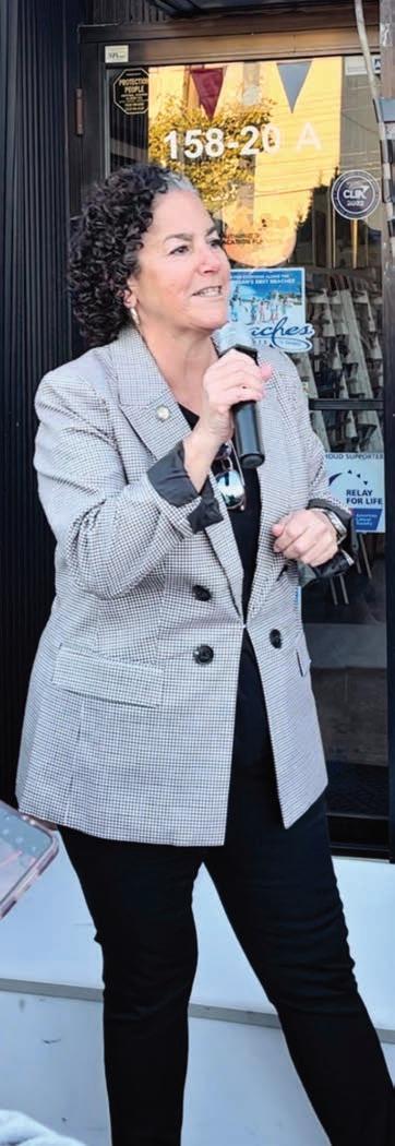 Photo Courtesy of Assemblywoman Phe er Amato Assemblywoman Stacey Phe er Amato (D-Howard Beach) delivers remarks at the Cross Bay bash.