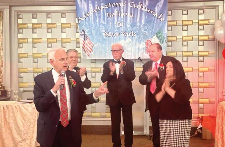 Photo Courtesy of Councilman Holden Ariola joined Councilman Bob Holden (D-Maspeth; holding microphone) Monday at the Columbus dinner dance by the Associazione Culturale di New York.