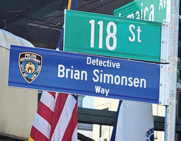 Fellow Finest, family, and friends gath ered at 118th Street and Jamaica Avenue on Saturday to honor Det. Brian Simonsen by co-naming that part of 118th Street “Detec tive Brian Simonsen Way.”