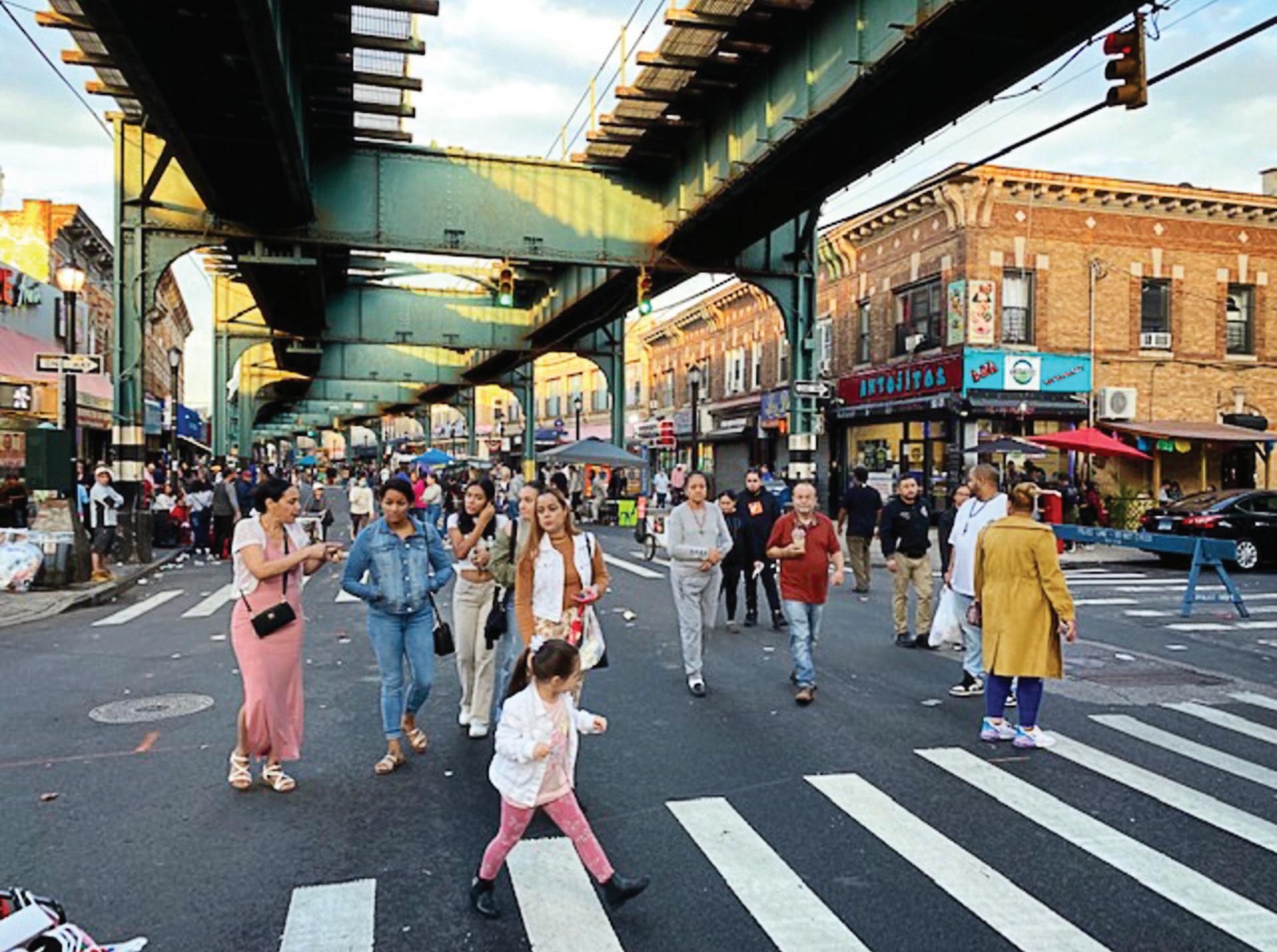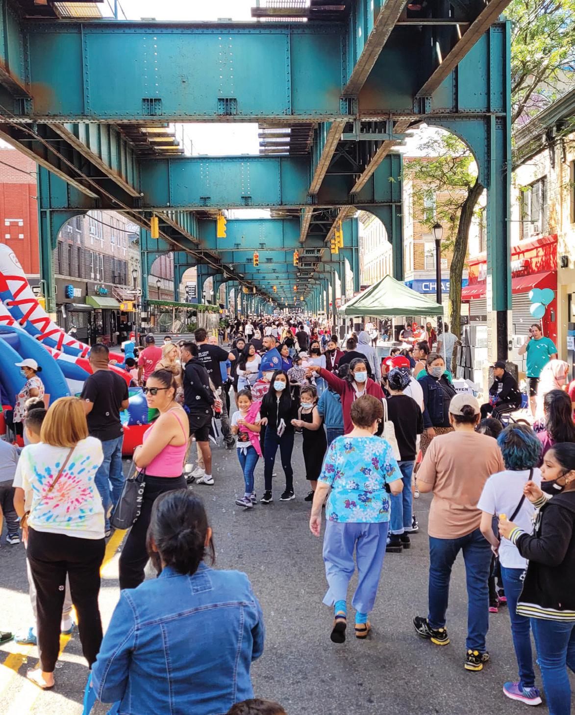 From noon to 6 p.m., the thor oughfare under the el, between 80th Street and Woodhaven Bou levard, was packed sidewalk to sidewalk with rides, games, ven dors, and entertainers.