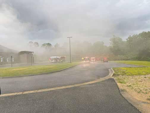 “The fire is contained to an area above classrooms within the tornado proof section of the structure which complicates the fire fighting effort due to metal sheeting used in that area of the roof,” Miller stated during the response efforts.