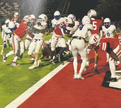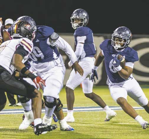 tended the lead to 20–0 with 4:13 left in the third quarter. Valley’s Ayden Shackleford immediately answered by returning the kickoff all the way back for a touchdown. The extra point trimmed the Spartan lead to 20–7 with 3:59 left in the quarter, and that’s how the third ended. Mountain Brook started the final quarter at midfield, and two quick first downs — one on a Hofbauer keeper and another on a pass — set up first-and-10 at the Mountie 15. Hofbauer then hit Smith again for a 14yard touchdown, and the extra point made it 27–7 with 7:52 left in the game. On Valley’s next possession, they went for it on fourth down at their own 25 and turned the ball over. The Spartans drained the clock and continued to move the ball methodically downfield. Trey Vinson capped the drive with a four-yard touchdown run, and with the extra point, the Spartans extended their lead to 34–7 with 1:59 remaining. That would be the final score. Mountain Brook (7–3) clinches second place in the region and will have next week off before the playoffs. Shades Valley (2–7) closes out its season next Thursday with a trip to Tuskegee to take on 4A Booker T. Washington.