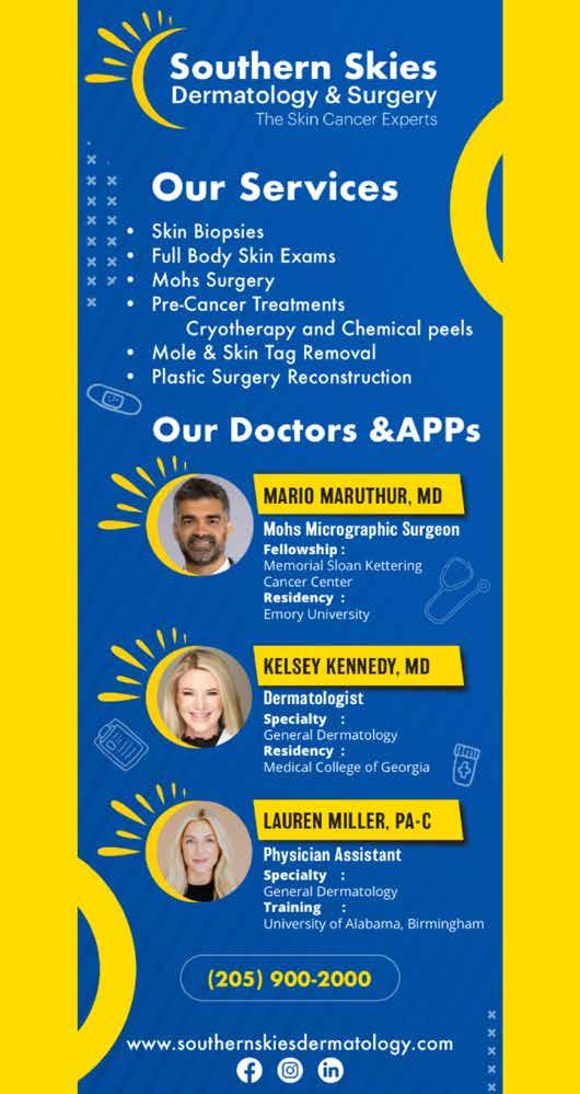 The Trussville Tribune Page 2 April 10 - 16, 2024 Clay-Chalkville From front page THANK YOU FOR CHOOSING US AS THE BEST STAFFING & TEMPORARY PLACEMENT SERVICE! 2023 Physical Therapy M3Endeavors.com (205)508-3811 // 7040 Gadsden Hwy Suite 100 // Trussville, AL 35173 Kendell M. , DPT, TPI-M2 Move Well • Live Well • Do Amazing Things PROTECT YOUR MOST VALUABLE ASSETS... PROTECT YOUR MOST VALUABLE ASSETS... ulcan to help protect your home, health & property! Contact Us at 663-4200 or online at www.vulcantermite.com PEST CONTROL INC 663-4200 CALL www.VulcanTermite.com WILDLIFE? WILDLIFE? WILDLIFE? The Trussville Tribune 190 Main Street Trussville, AL 35173 (205) 533-8664 Scott Buttram, Publisher publisher@trussvilletribune.com Chris Basinger, Staff Reporter chris.basinger@trussvilletribune.com Johnny Sanders, Sports Editor news@trussvilletribune.com Jana Matthews, Finance Manager Brookelyn Rush, Office Manager Leigh Hays, Director of Sales & Marketing Butch Cole, Sales Tribune,