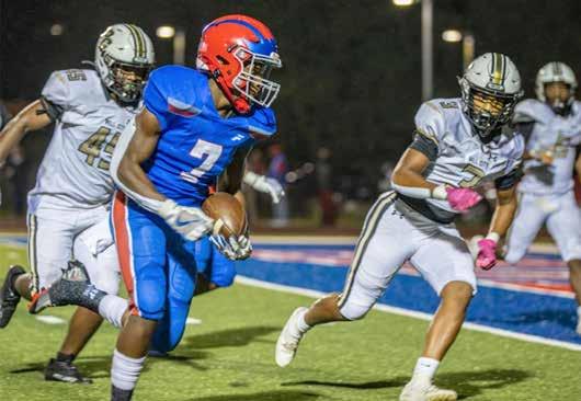 The Shades Valley de fense held the Bessemer of fense from picking up a first down. Senior Jacob Mahand blocked the Tiger punt, and fellow senior Malique Steele recovered it at Bessemer’s 26-yard line.