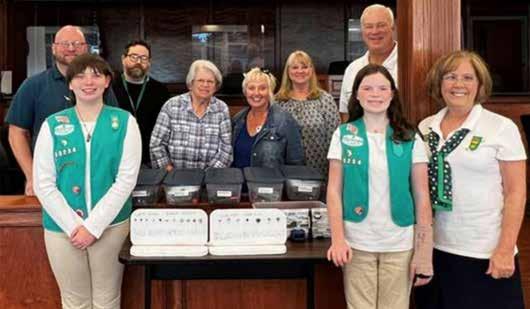 LEEDS — Two girl scouts from the Leeds Girl Scout Troup 30234, under the lead ership of Troup Leader Liz Johnson, made a presentation to the Leeds Jane Culbreth Library last Thursday. Girl