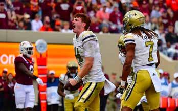 Pinson Valley graduate Zach Pyron celebrates during the Yellow Jackets win over Virginia Tech, Saturday, November 5 (Photo courtesy https://ramblinwreck.com)